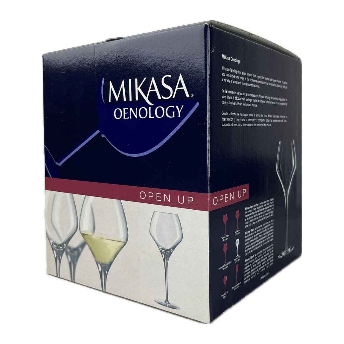Mikasa Open up presenta una copa de forma revolucionaria, que procura a los aromas una oxigenación y un desarrollo más importante que en una copa de forma clásica. Esta gama, que ofrece un placer gustativo sin igual, posee la particularidad de liberar al máximo los aromas de los vinos jávenes (blancos: entre 1 y 3 – tintos: 1 y 5 años). Desde la forma de las copas hasta el aroma del vino, Mikasa Oenology, reinventa degustación y nos invita a descubrir y compartir todas las sensaciones del vir viajando a través de la diversidad de los territorios del mundo.