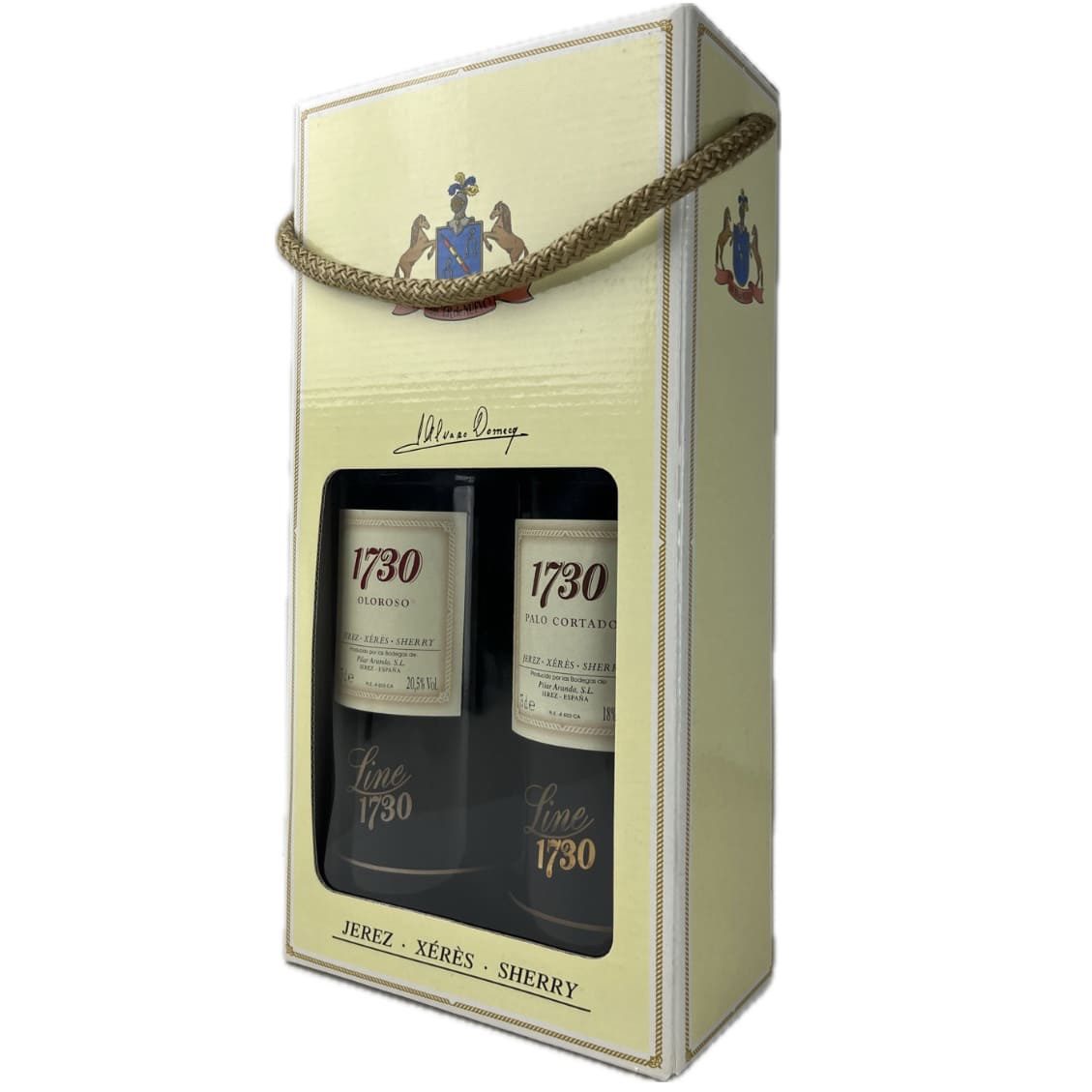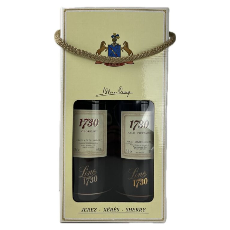Este estuche Line 1730 Oloroso y Palo Cortado conmemora un hecho histórico: En el año 1730 se produce un hecho que quedó marcado para la historia de nuestra familia. Los Domecq nacen como empresarios bodegueros. Después de dos años, los que hemos tomado la iniciativa de volver al negocio de vino, queremos hacerle un homenaje a tan señalada fecha, creando una línea de productos de extraordinaria calidad. Nos gustaría unir, a la vejez de estos vinos la overa de nuestro nombre, a través de la crianza de estos vinos de Jerez.
