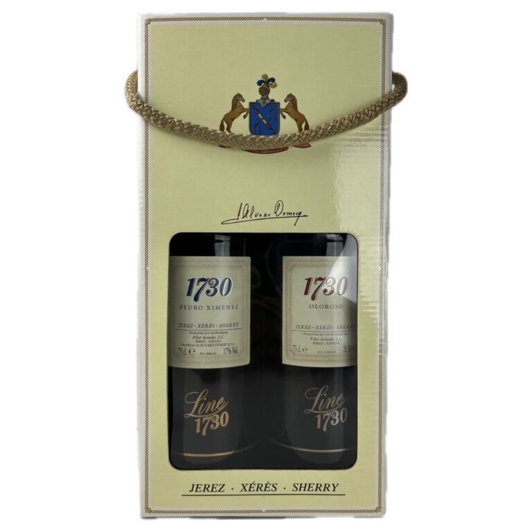 Este estuche Line 1730 Pedro Ximénez y Oloroso conmemora un hecho histórico: En el año 1730 se produce un hecho que quedó marcado para la historia de nuestra familia. Los Domecq nacen como empresarios bodegueros. Después de dos años, los que hemos tomado la iniciativa de volver al negocio de vino, queremos hacerle un homenaje a tan señalada fecha, creando una línea de productos de extraordinaria calidad. Nos gustaría unir, a la vejez de estos vinos la overa de nuestro nombre, a través de la crianza de estos vinos de Jerez.