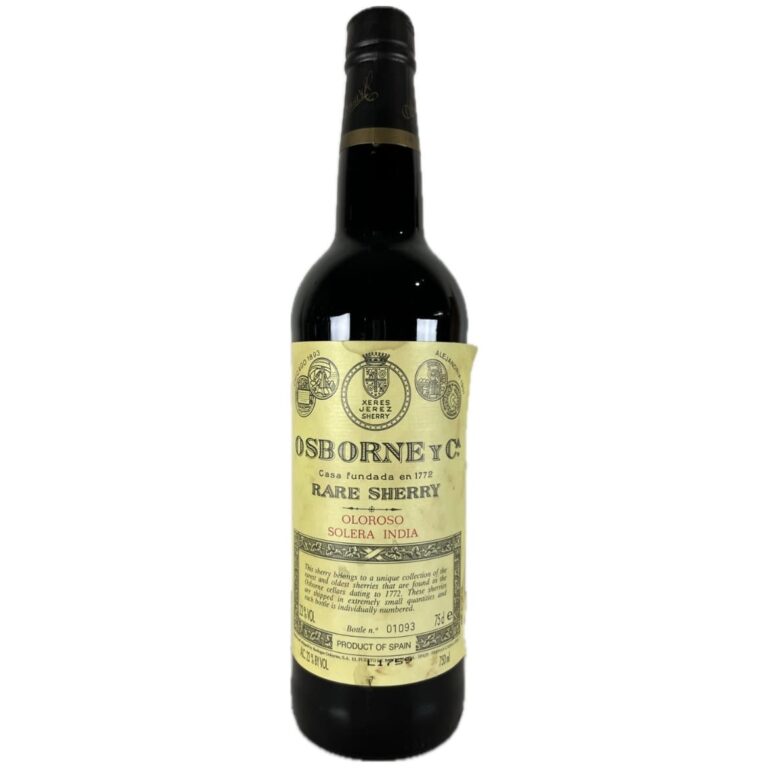 El Osborne Rare Sherry Oloroso Solera India de Bodegas Osborne es una referencia histórica dentro de la IGP Jerez-Xérès-Sherry, con origen en El Puerto de Santa María. El calificativo Rare Sherry responde a su carácter único: estos vinos eran reservados solo para clientes excepcionales de Osborne, y su receta, o blending, se realizaba en exclusiva. De hecho, la adición de la uva dulce Pedro Ximénez (PX) al Palomino Fino en su ensamblaje lo convierte técnicamente en un Medium Sherry, con un paso más suave y abocado que un Oloroso puramente seco.